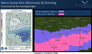 More snow is expected today across portions of central Illinois. The axis of heaviest snow is expected south of the I-72/Danville corridor south through the I-70 corridor this afternoon and evening where and addition 3-6 inches of snow may fall. Snow amounts will quickly taper off to the north with a sharp cutoff in snow expected north of I-72/Danville.